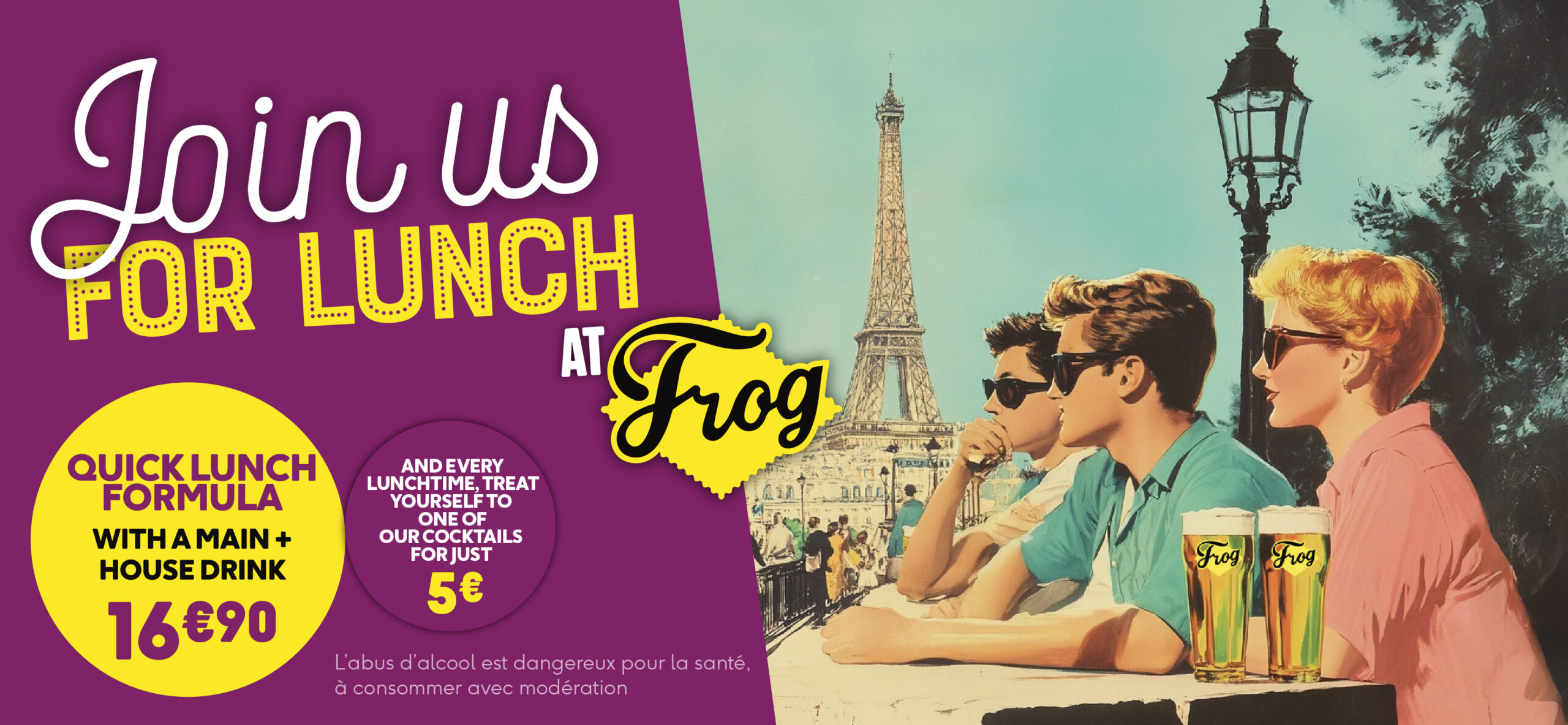 Every FrogPub has its own Happy Hour with great deals on our freshly brewed beers and cocktails. Bring your mates, grab a table and make the most of those golden hours with great drinks and even better company.